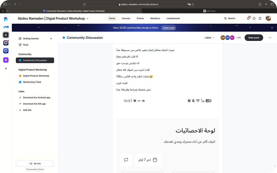 في منصه هتقدر تدخل عليها وتلاقي كل المشتركين السابقيين وبنتابع عليها الناس وتقدر تتواصل معايا عليها مباشره.